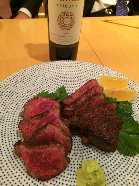 本日の目玉は生雲丹鍋。約9か月ぶりのご対面。半生の雲丹と牛蒡、柳川風仕立て。大将の腕に感服。そして、和牛のいちぼ。極上でした。冷酒水神も料理によく合いました。