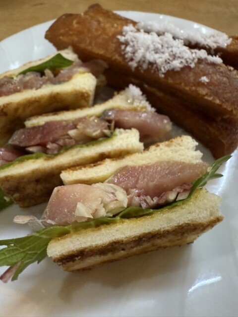 コスパ抜群!大阪に行ったらココやと思って、在阪の大学同期に予約してもらいました。私は年1二回目来店。ピリ辛ホルモン、カツオぬた和え、カツオタタキ、鰻白焼、蒲焼の小、黒ムツの煮付け、バイ貝煮付け、生牡蠣、鱧焼き霜、宮崎牛、鳥貝、鯖の棒鮨、トロ鉄火、サバサンドを堪能しました♪