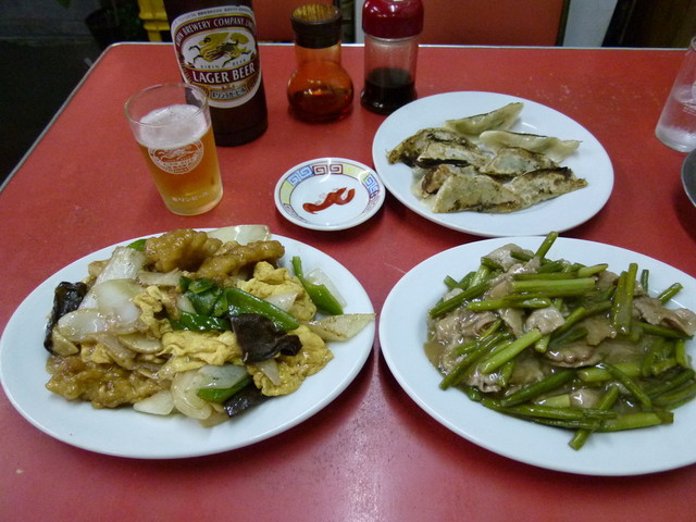 今日は日曜日に行けたので、ニンニクの芽炒めと餃子にいつもの木須肉を注文しました。ラガービールに中華三昧。本当に美味しい老舗の中華屋さんです。今年50周年らしいです。小生が先月出張した際に、香港で働いているMNさんから、ビデオレターを預かりましたので、オバチャンにお伝えしました。MNさんは「香港には冷やし中華があらへん。喜楽の冷やし中華が食べたい。帰ったら絶対行く。」と訴えていました。それを見たオバチャンは、ありがたいことですと大変喜んでおられました。MNさん、よろしくお願いします。