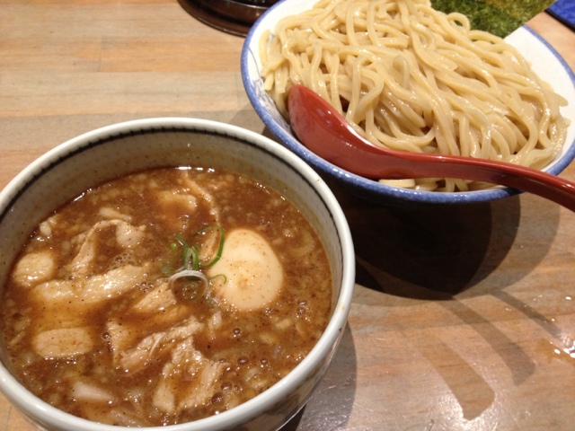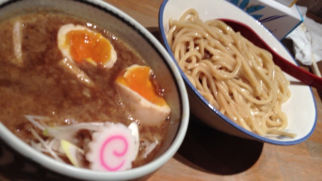 今日はセミナーの後、一人で行きました。一人だったので、ちょうど一席空いたので、すぐ入店できました。食券機で、つけめん(中330g)、トッピング(メンマ、味玉)を購入。麺がもちもち、太メンマ、味玉、角切りチャーシューに濃厚魚介スープがよく絡み、相変わらず美味しかったです。旨い!