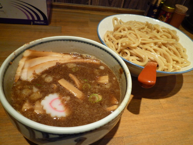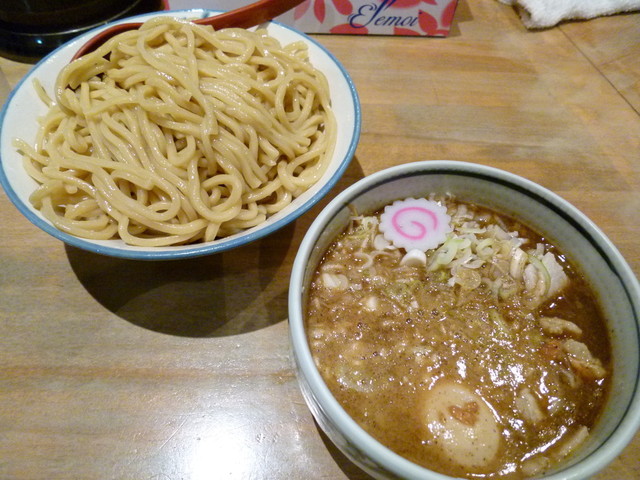近所に、こんな美味しいつけめん屋さんができて、家族大喜びです。有名店に長蛇の列、必要なしです。(思えば、某有名つけ麺屋さんで、猛暑の中、3時間半並んだことは大変でした・・・。)ここのつけ麺は美味しい。まず、麺がもちもち太麺は好み。スープは、濃厚魚介系で他の有名店と遜色ないと思う。具材もチャーシューは角切りで良質。太メンマ、味玉子もレベル高い。もう何回も行っています。ほかのメニュー(まぜそばやラーメン)もあるけれど、行くと必ず、つけめん(中)にトッピングです。
