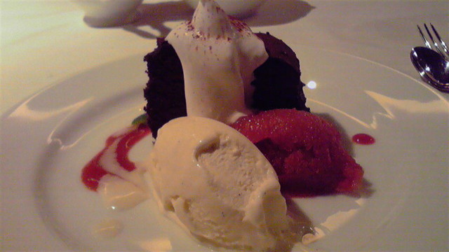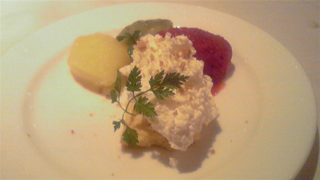 クリームチーズの軽いスフレ 三種のソルベ添え