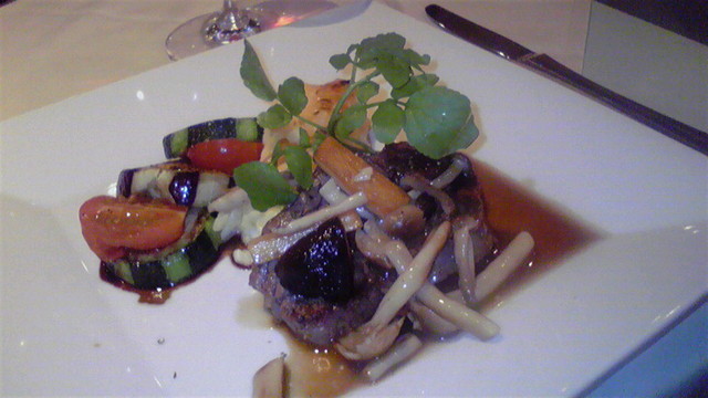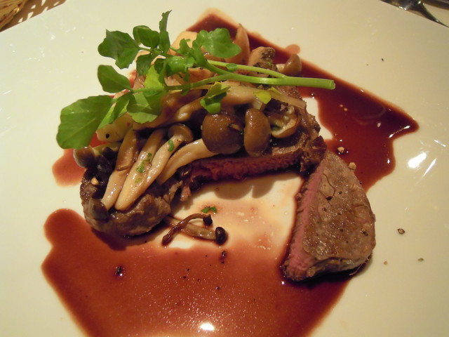牛フィレ肉のソテー キノコソース 季節野菜のソテーとじゃがいものグラタン