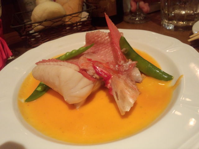 ●金目鯛のソテー 赤パプリカクリームソース ¥880