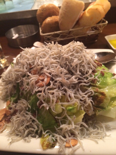 キャベツ1/3個分が豪快に焼かれ、アンチョビやガーリックの入ったオイルがかけられていて、香ばしく美味しかった。