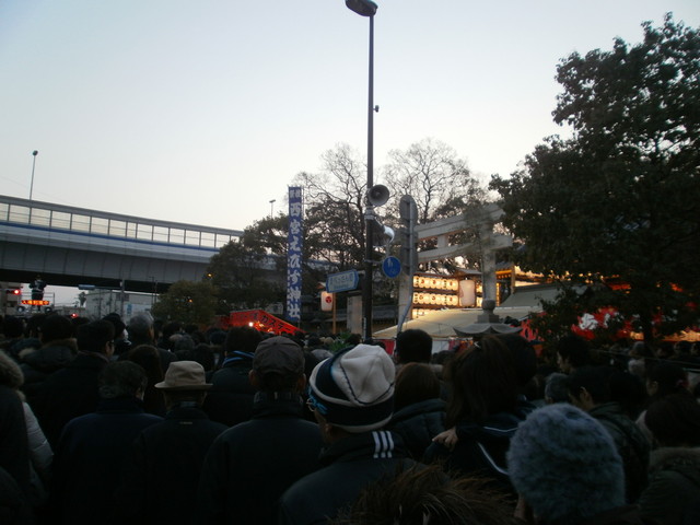 初日の夕方に行ったのですが、日曜日だったこともあって神社の結構手前から大渋滞でなかなか進みません。