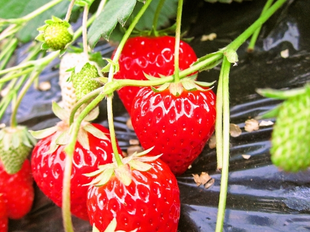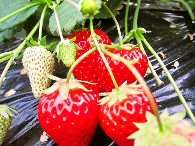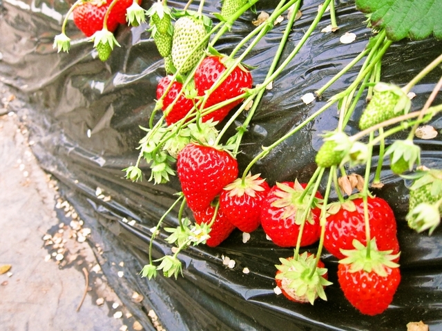 どか雪後でガラガラ。沢山のイチゴが残っていました