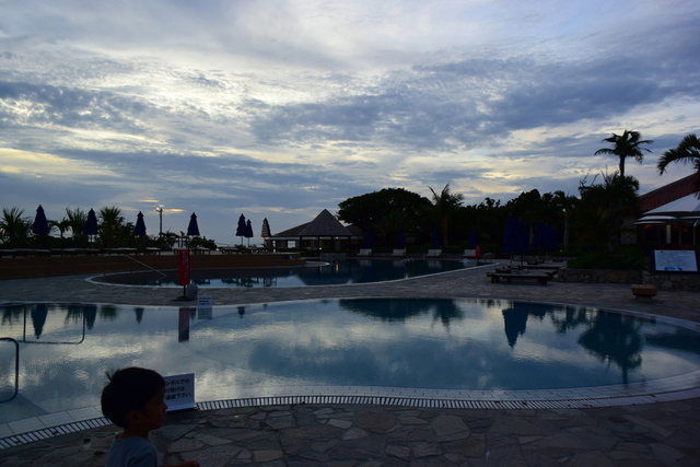 夕闇迫るプールサイド(ちらっと兄ベビ)
