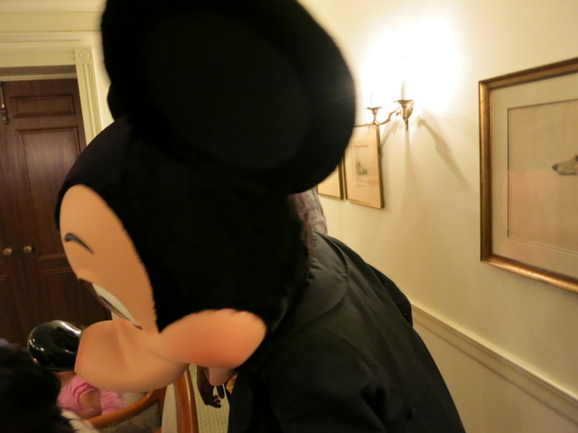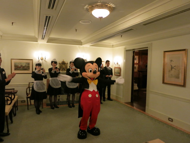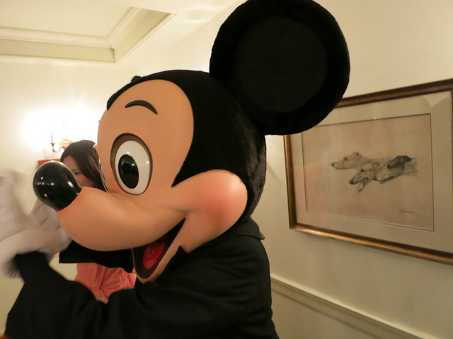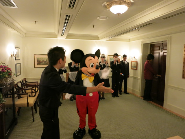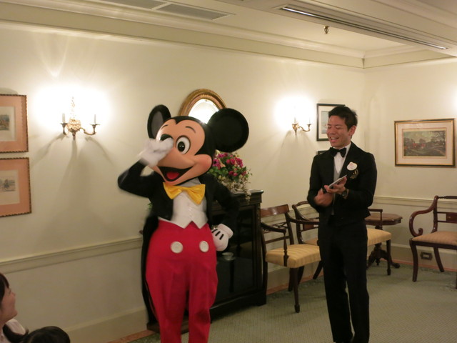 支配人に促されたミッキーが我々と握手 ハイタッチ