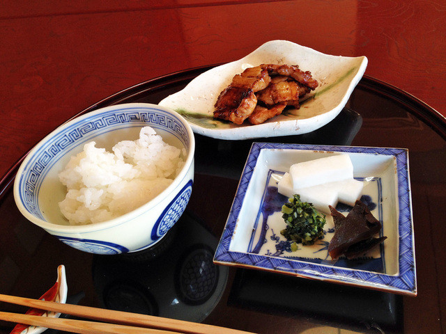 猪の焼き肉、ご飯、香の物