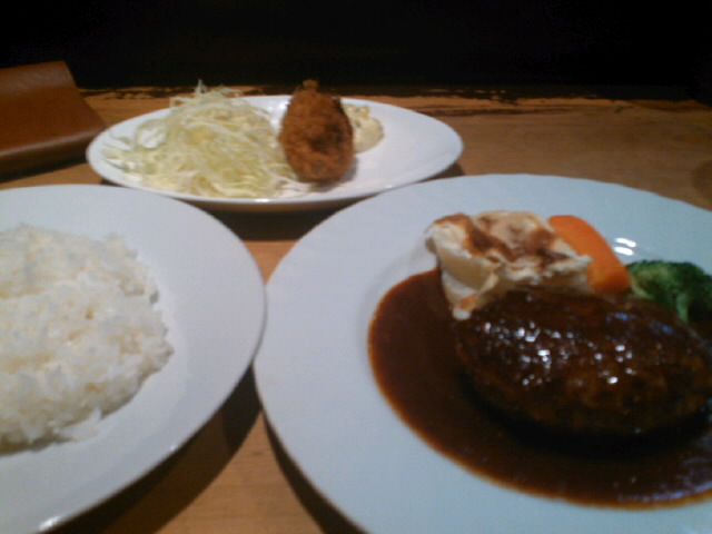 なっていた事も有り、黒毛和牛のハンバーグ+シーフードコロッケの定食(ライス付)に