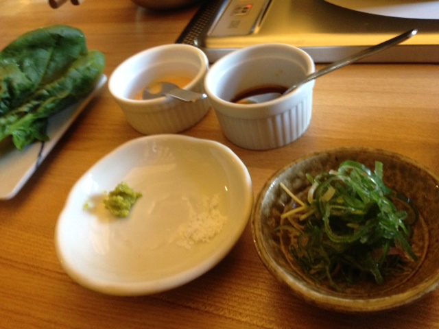 続いてたれはポン酢とゴマダレ。ただし、ここの流儀は一応浸けて食べるのではなくスプーンで少しづつかけて