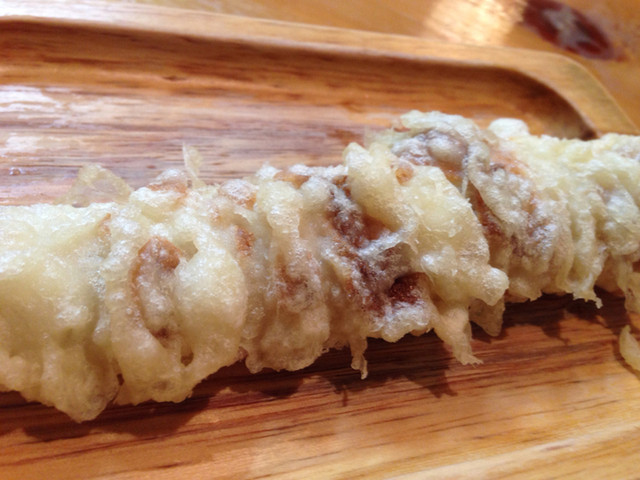 ふんわり、サックリという天麩羅屋さんのものとはちょっと違う、割と粗い感じの揚げ方に感じました。