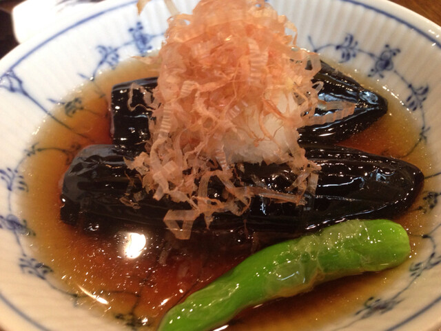 揚げ茄子は小鉢というには無理があるほどの大きな茄子が、ドカッと入った揚げ出し風で