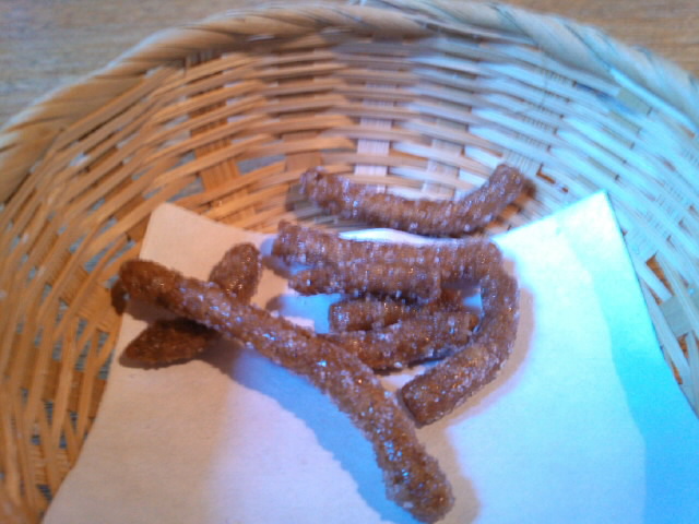 お通しに「そばかりんとう」とそば茶が出ました。なかなか気が効いてます。