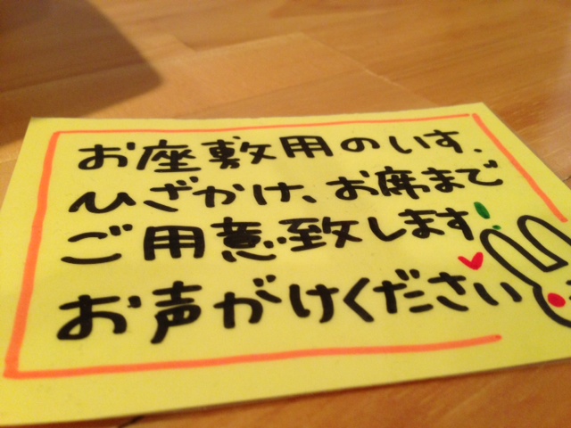 フローリングのにベタ座りタイプの居酒屋風、って言うか居酒屋さんなのかな?