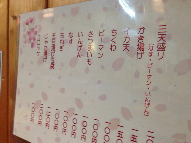 画面を見せると¥100円の天ぷらが1つ無料で付けられるそうな。わ~い、ヽ(*´∀`)ノ