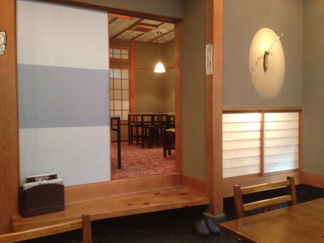 店内は木目調の明るい内装で、入ってすぐの右手にテーブル席、奥には区切られた