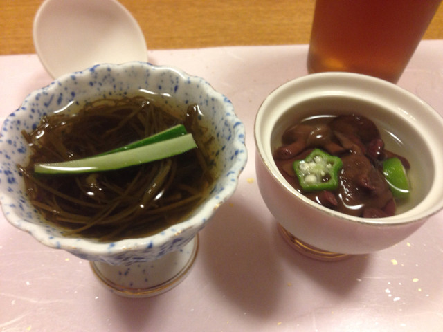 地の物らしいキノコや細切りの昆布をもずく風にしたものが突き出しとして出てきました。