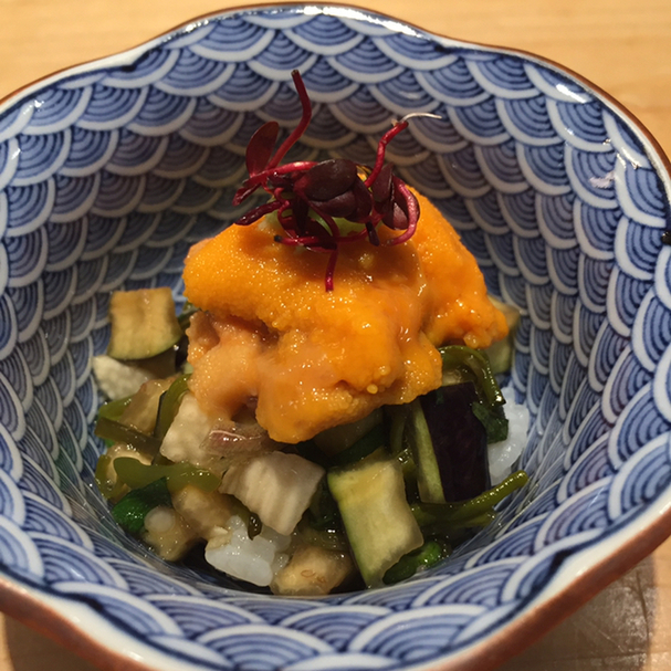 雲丹の下には山形名物の「だし」が敷かれており、面白かった。初夏を感じさせる。