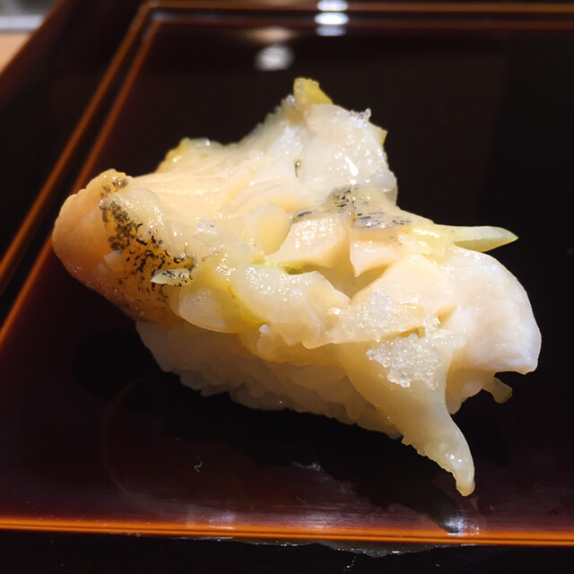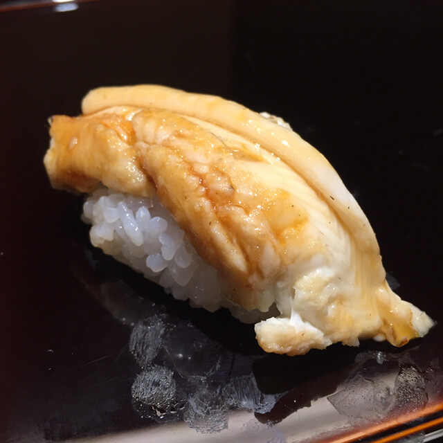 貝の鮨は、貝の固さとシャリの柔らかさが乖離しているため、タネとシャリの一体感を出すのは難しいと思うのですが、こちらの鮨は見事に一体化しており、この一品だけで、店主の職人としての腕が確かだということが分かり、次の鮨が楽しみになる。