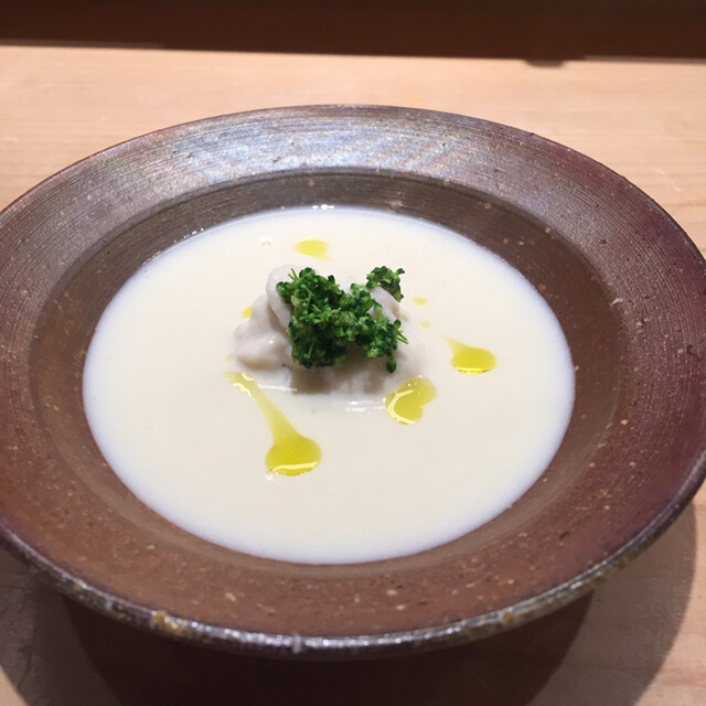 ・パースニップのスープ、鱈の白子添え(ほしと)