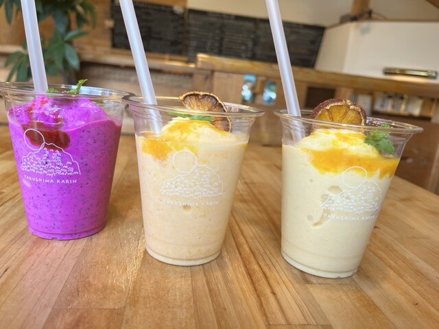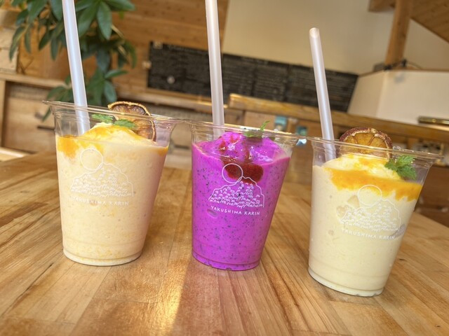 定番のたんかんスムージに加えて、この日から提供されたドラゴンフルーツ、そしてたんかんミックスをいただきました。