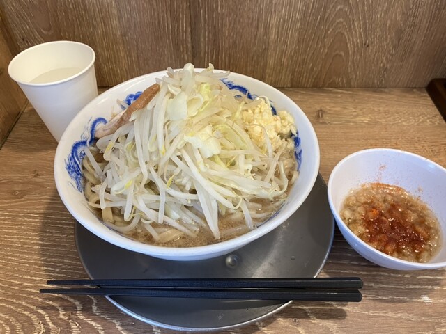 コールは何時もの、野菜ちょいマシ、ニンニクダブル、アブラダブル別皿で。