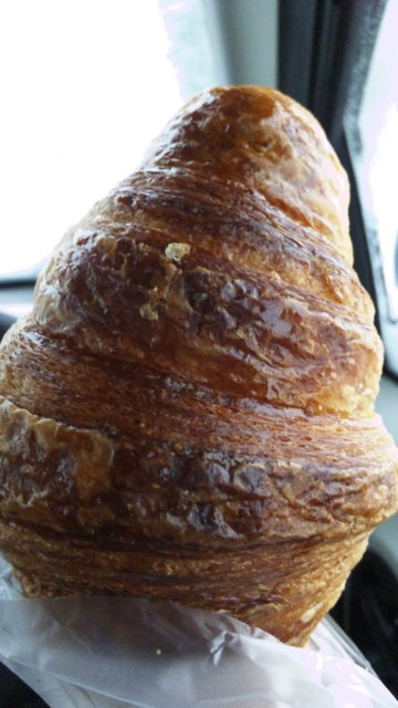 クロワッサンは3種類あって、自分は周りが甘いやつ(メープルだっけな?)を買いました。焦げの風味が心地好く、大変美味しいです。いい感じにパリパリして、パンがこぼれるこぼれる笑