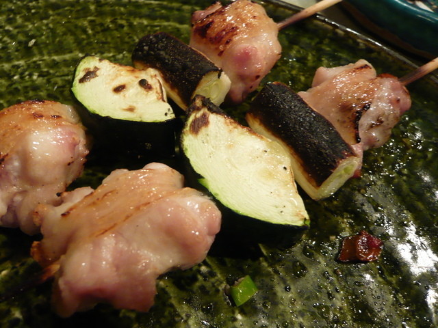 ・ネギ間:焼き鳥の王道かもしれませんが、正肉と太いネギにズッキーニ。