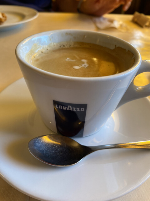 こちらの店はデザートがまた楽しい。数種類あるデザートメニューから2種選ぶことができるからだ。セミフレッドに栗のティラミス、そしてピスタチオのタルトをシェアして満喫のランチでした。
