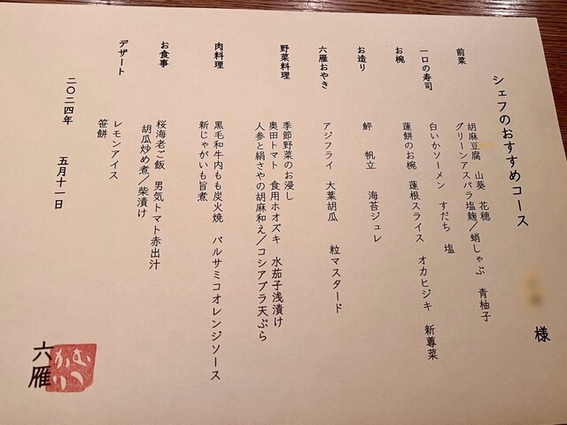 【シェフのおすすめコース】