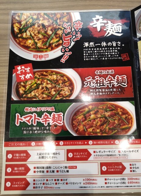 今日は、先日開店した元祖辛麺屋桝元さんに行ってまいりました。埼玉県では初出店で心待ちにしていました。久しぶりに本場の辛麺が食べられると思い、ウキウキしながら訪店し“元祖辛麺”のこんにゃく麺3辛と、チキン南蛮、餃子をオーダーしました。丼は、宮崎店と同じサイズで大ぶりです。宮崎では8辛をお願いしていましたが、久しぶりなので先ずは3辛からスタートです。中華麺もあるのですが、やはりここはこんにゃく麺です。辛麺スープは、ひき肉やニラ、コロコロニンニク、玉子の味も染み出しとても味わい深い旨辛に仕上がっています。穴あきレンゲもあるのでとても助かります。コロコロニンニクが結構入っているので、営業回りの方は仕事じまいの一杯が良いかもしれません。(ニンニク抜きや少なめも選択可)こんにゃく麺なので、カロリーが抑えられます。それにしても、本場の味そのものなので、宮崎を懐かしく思い出します。チキン南蛮は秀逸です。鶏もも肉が独特な衣をまとい、南蛮酢がそれを包み込み、圧倒的に美味いタルタルががかかったチキン南蛮を頬張ると、たまらない美味さです。関東にはなかなか無い、美味いチキン南蛮だと思います。餃子は、揚げ焼き感ともちもち感が同居する小ぶりで美味いものでした。丸岡の餃子を思い出します。辛麺は種類が多いし、辛さも選べるのでリピート確定です。ご馳走様でした。
