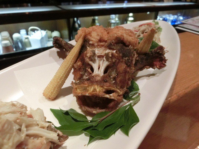 オコゼのから揚げとカニミソ和え(ズワイガニ)