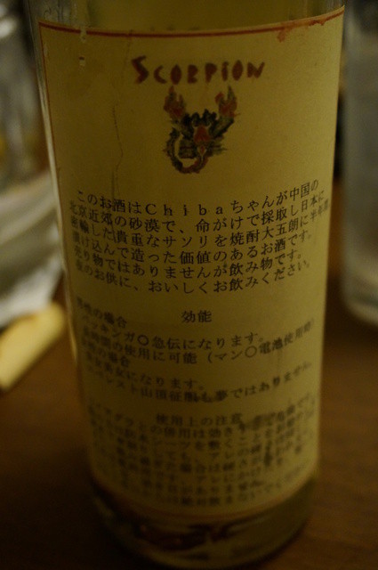 サソリを焼酎で半年間漬けたものだとか・・こちらも刺激臭満点(; ̄O ̄)・・・もう一生飲みたくありません・・(T ^ T)