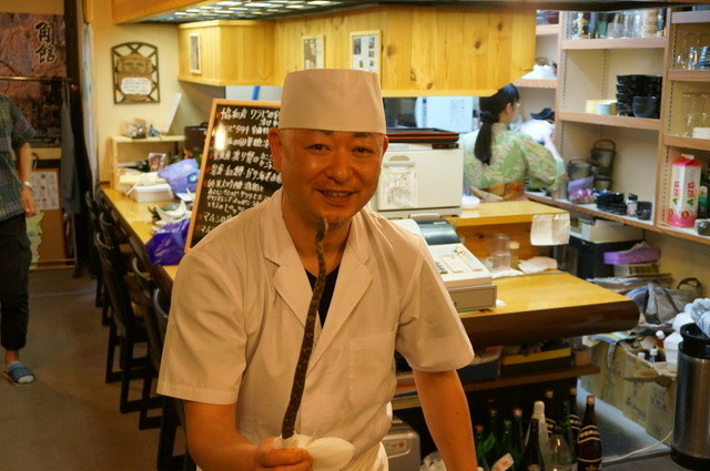 マムシを持ち、次のメニューは、コレを使うという店主・・(;´Д`A
