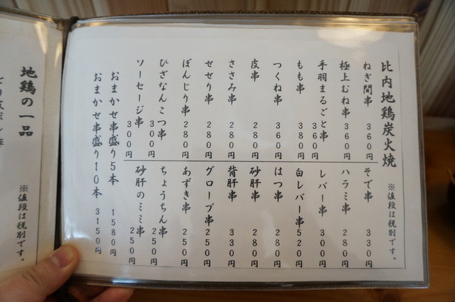 比内地鶏炭火焼のメニュー・・素晴らしい品揃え。