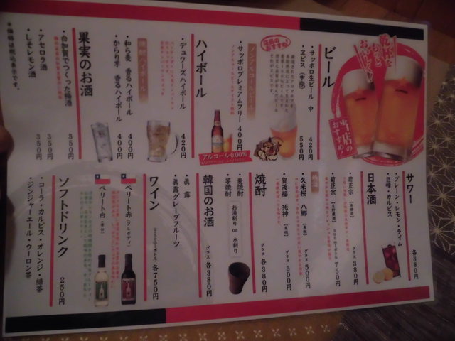 ドリンクメニュー