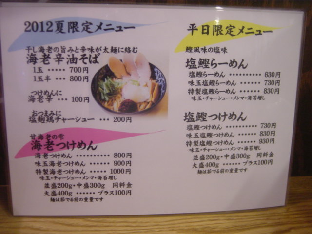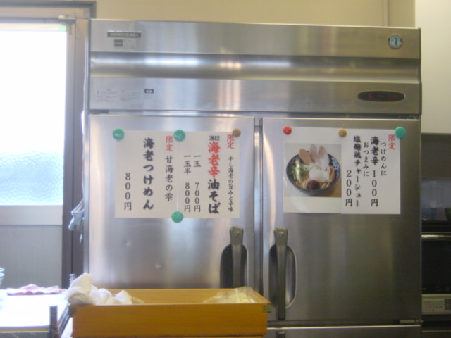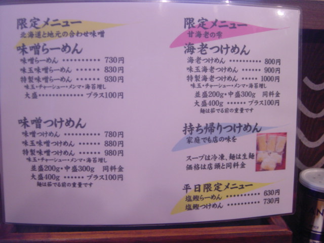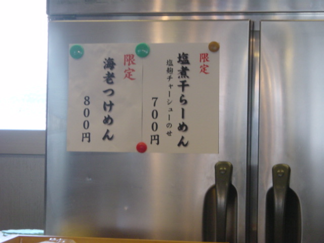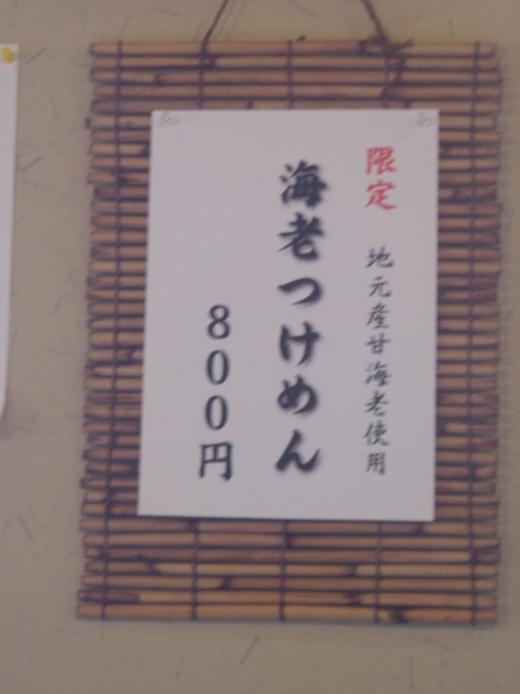 「限定 海老つけめん 800円 、海老らーめん700円」です。