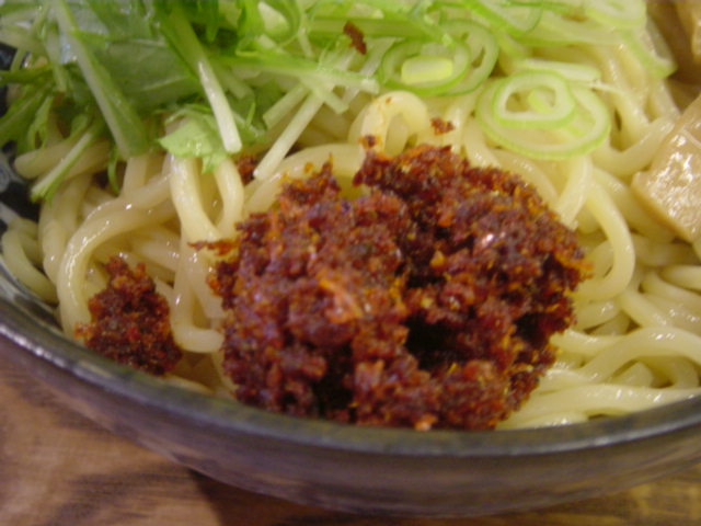 味噌つけ麺には、辛味がちょい載ってます(H28.1)