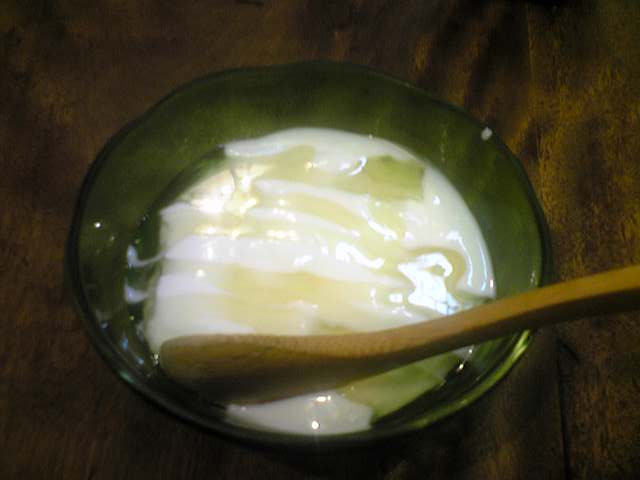 頼んだのは、デザートのヨーグルトで、上質の蜂蜜がふんだんにかけられてます。