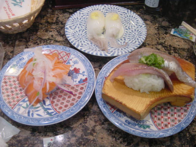 サーモン180円、イワシ180円、やりいか姿120円