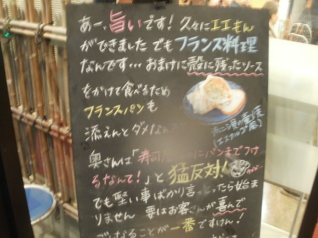 それを外して伺ったのですが、運悪く、お客さんが多く、席に着いたのは、解体終了後でした。