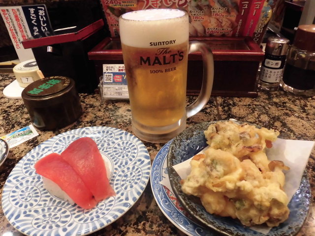 まぐろと揚げ物、そして生ビール