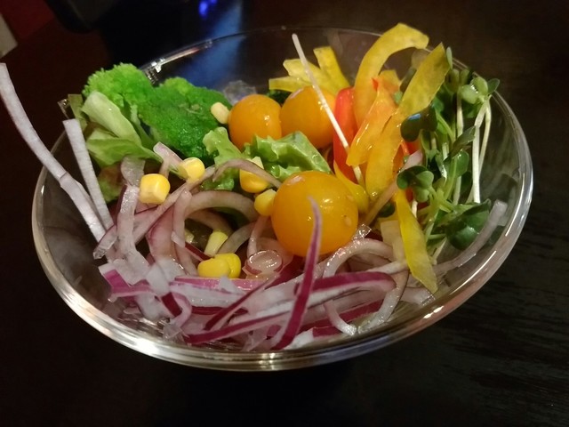サラダバーが無料でしたので、日ごろの野菜不足をこちらで補給。