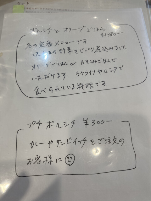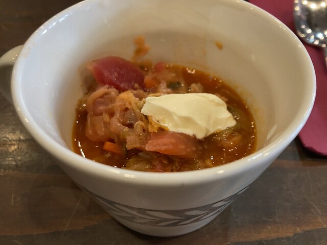 先客の皆さんが食べてる食事が美味しそうで路線変更して頼んだカレーとプチボルシチ、どちらも大正解。