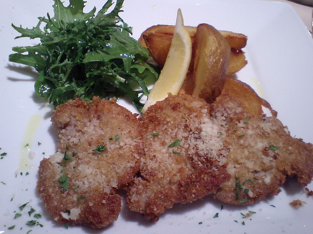 前菜とパスタだけで十分満足なのですがその後、カツレツが登場。ほんのりチーズの風味が聞いていてサクサク食感がイイ!