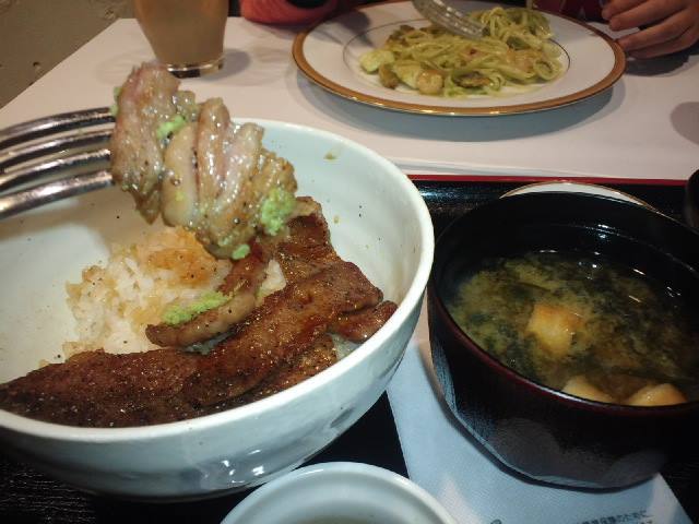 コースの美味しいお肉が忘れられず、これは子供にも食べさせたいとオーダーは迷わず『ステーキ丼』
