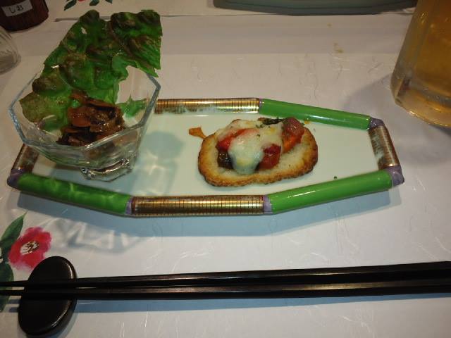 前菜:赤貝の佃煮&カポナータチーズトースト
