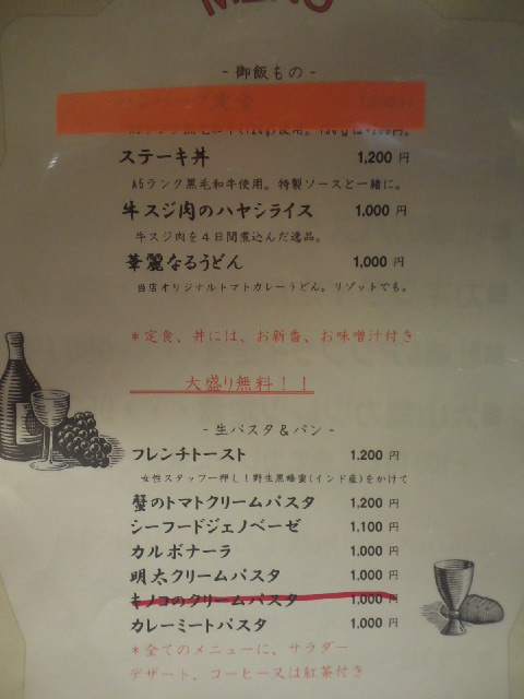 ランチ1種類(日替わり)のみか多くて2種類(週替わりとか)今日のランチとグランドメニュー両方って